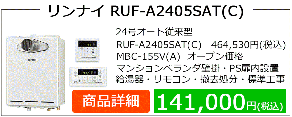 RUF-A**05(S)AWシリーズはマンション廊下PS設置によく見られるRUF-A**00(S)AWシリーズ等の後継機種です、PS設置はドレン排水設備の無い場合が多くエコジョーズ給湯器に取替の場合、浴槽エプロン内に3方弁ユニット設置やドレンアップ配管工事等、専用給湯器・付帯工事が発生して費用が高額になります。エコジョーズはガス代が安くなりますが、この場合は費用対効果が見込めません。